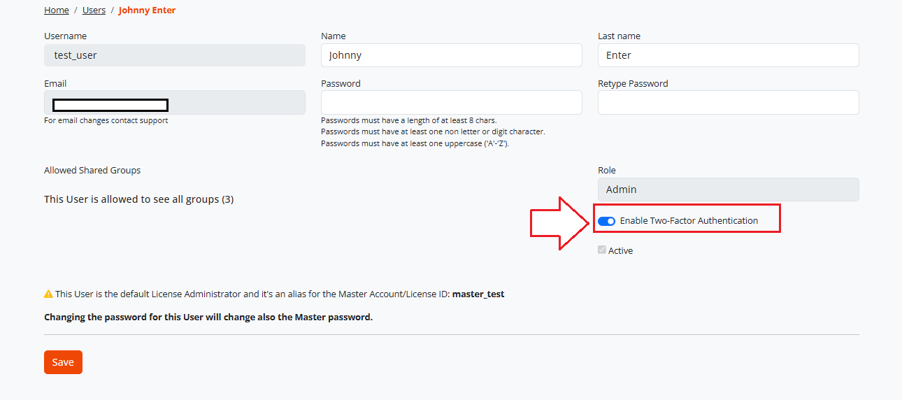 Accédez à « Utilisateurs » et modifiez le compte administrateur avec lequel vous êtes connecté. Activez ensuite cette option :